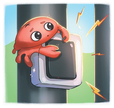 На звонке, крепко вцепившись в пластиковую коробочку, висел крабик Крестик и сосредоточенно давил клешнёй на кнопку, получая при этом несказанное удовольствие! Поняв, что его наконец заметили, он с сожалением прервал своё занятие и начал спускаться. Достойно слезть со звонка не вышло – Крестик как-то неуклюже повернулся и панцирем пребольно стукнулся о булыжники. Потирая клешнёй ушибленное место, он сурово и безапелляционно сообщил столпившимся вокруг него друзьям: