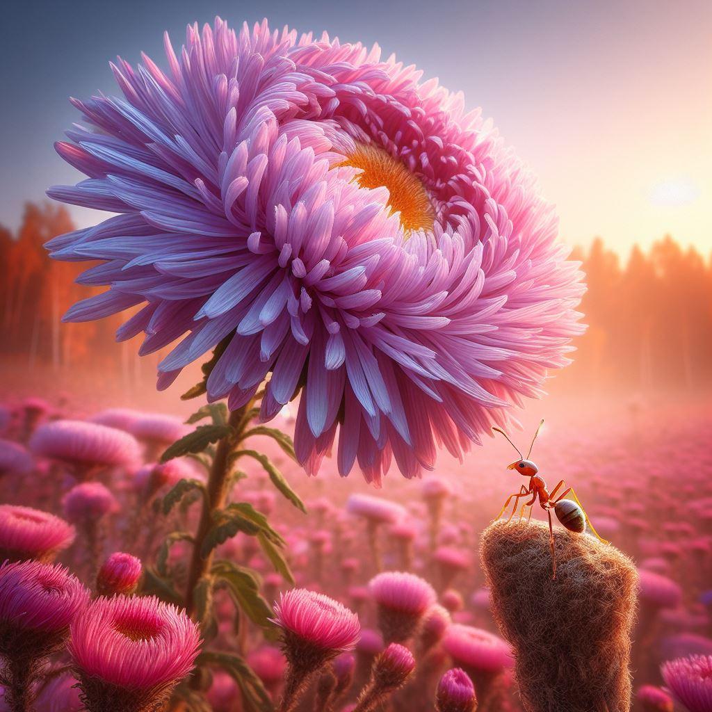"О, привет! Да, она прекрасна. Я Мартин. Я впервые вижу такой большой цветок," – представился муравей.