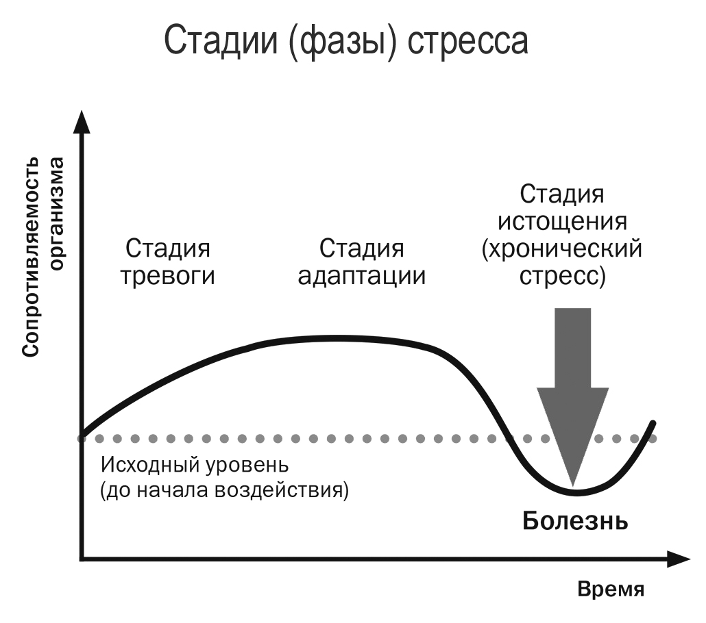 На рисунке ниже для наглядности схематично показаны различные стадии (фазы) стресса.