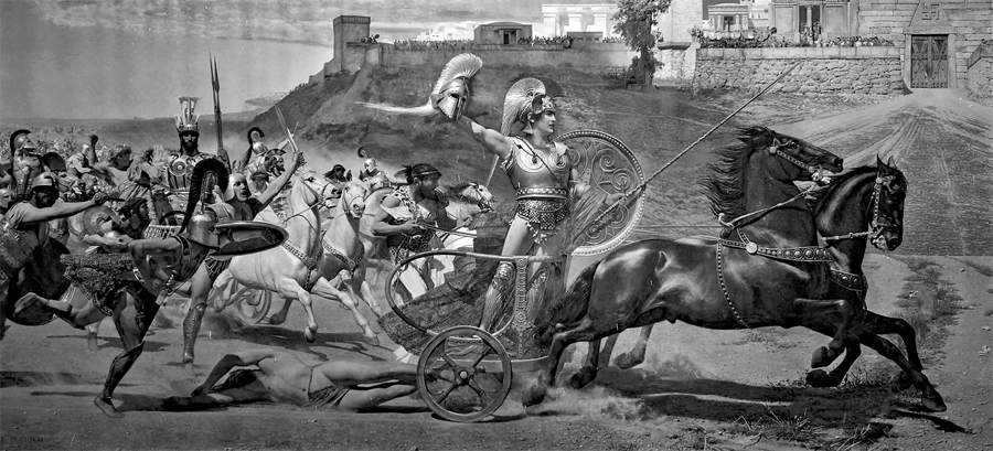 Греки гордились своим «быстроногим» Ахиллом, копье которого, пущенное с разбега сильной рукой, поразило многих троянцев; своим Аяксом Теламонидом, отчаянным храбрецом и двоюродным братом Ахилла. Троянцы возлагали надежды на Гектора, отважнейшего из своих соотечественников.
