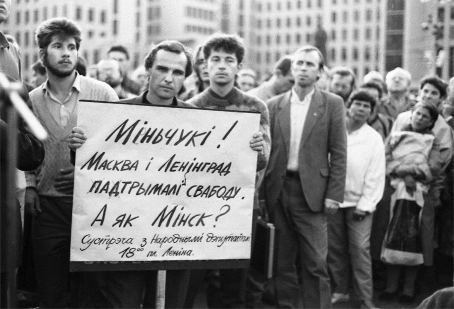 Участники митинга против ГКЧП в Минске на площади Ленина (сейчас – площадь Независимости), август 1991 года