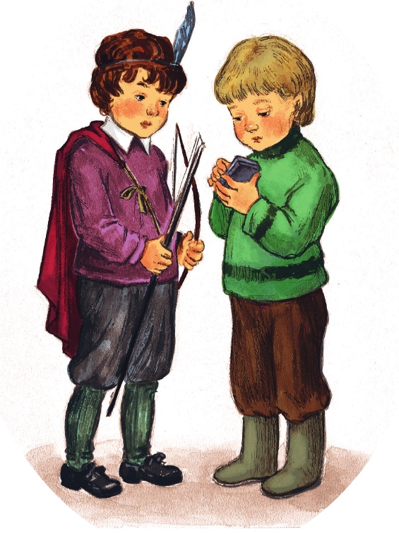 И только что они на этом порешили, как вошла мать. Она была довольна, потому что достала хорошие билеты на поезд, но всё же она сразу заметила, что у её дорогих сыновей лица печальны, а глаза заплаканы.