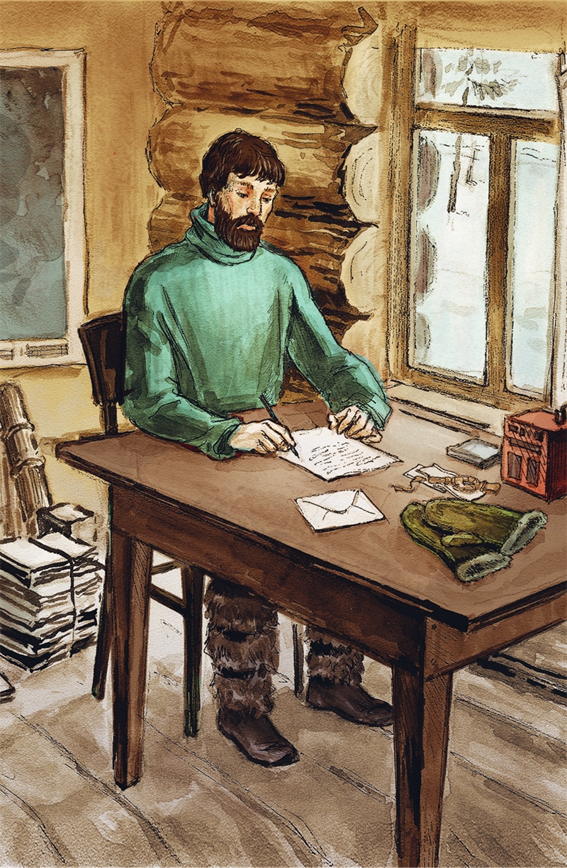 Наконец, когда наступила зима, он совсем заскучал, попросил разрешения у начальников и послал своей жене письмо, чтобы она приезжала вместе с ребятишками к нему в гости.