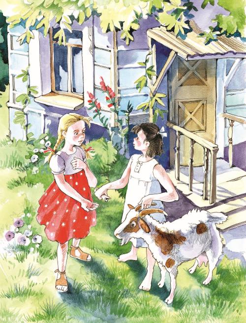 Женя зажмурила глаза и перевела дух, собираясь выпалить всё разом. Но тут калитка перед домом с треском распахнулась. Во двор заскочила, вся в репьях, лохматая коза и, низко опустив рога, помчалась в глубь сада. А за нею с воплем пронеслась уже знакомая Жене босоногая девчонка.