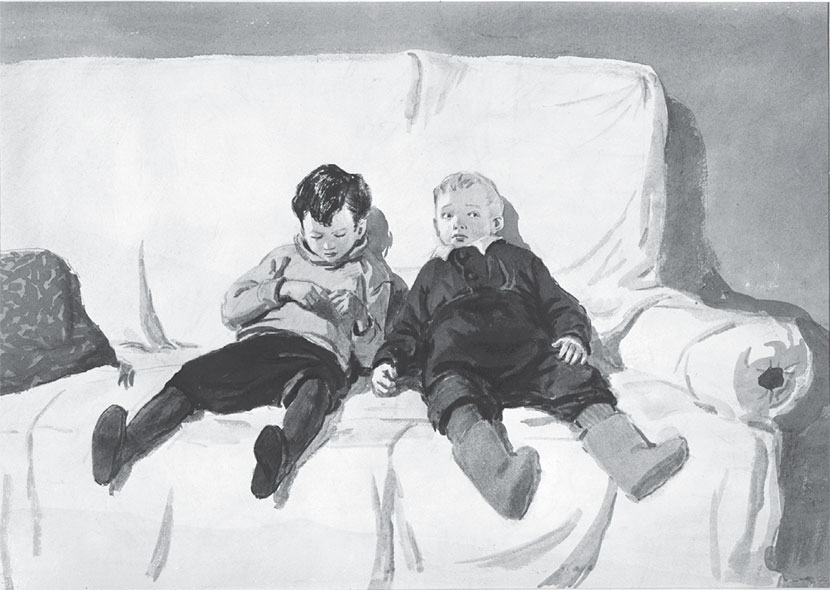 Она очень удивилась, увидав, что оба её прекрасных сына, лёжа на спинах, орут и колотят каблуками по стене, да так здо́рово, что трясутся картины над диваном и гудит пружина стенных часов.