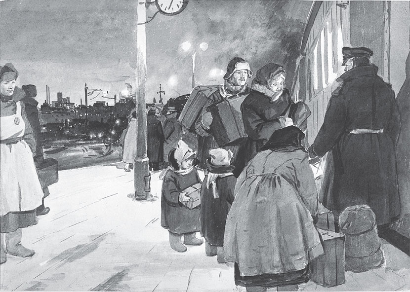 Наконец все дела были закончены. Уже запаковали багаж. Приделали второй замок к двери, чтобы не обокрали квартиру воры. Вытряхнули из шкафа остатки хлеба, муки и крупы, чтобы не развелись мыши. И вот мать уехала на вокзал покупать билеты на вечерний завтрашний поезд.
