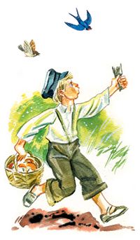 – Глупая! – успокоил её Колька. – Он уже выстреленный. Как же он без пороха выстрелит? Дай мне его, Васька, – попросил он опять, – а я тебе за него три гриба дам, да ещё стрелу с гвоздём дам, как только домой придём.