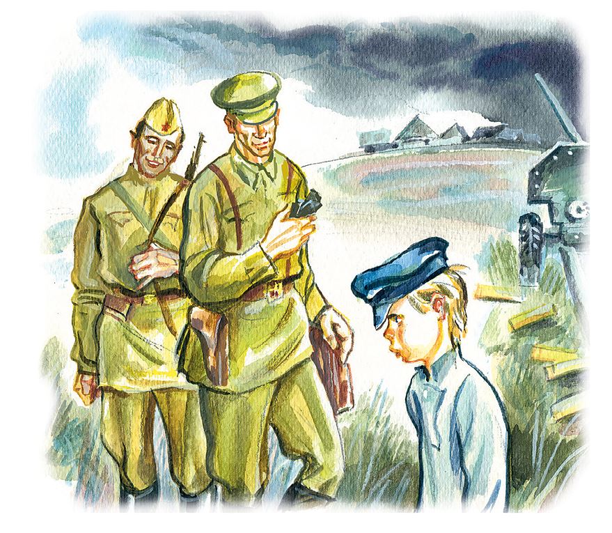 Конвоируемые двумя красноармейцами, ребята дошли до батареи. Командир был рассержен тем, что пришлось остановить учебную стрельбу, но, когда он увидел, что виноваты в этом трое перепуганных и плачущих малышей, он перестал сердиться и подозвал их к себе.
