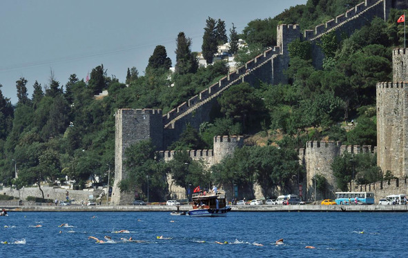 А.VIII.7 Стены Константинополя (вид с пролива Босфор в районе Румели – Хисар). Серый цвет стен похож на цвет чугуна.