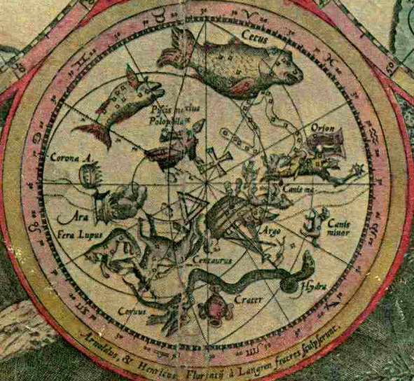 Ч.I.2 Созвездие Страж Полюса (Polophilax) (сегодня на этом месте расположено созвездие Тукан) на Звёздной Карте Петера Планциуса 1595 года. Противостоит созвездию Цефей или созвездию Волопас, которое также называют Страж Северного Полюса (Arctophilax). Созвездие Южный Крест указано не в ногах созвездия Центавр (Centaurus), а с ошибкой в 180о. Остальные созвездия изображены в основном канонически: – созвездие Кит (Cetus), созвездие Южная Рыба (Piscis Notius), созвездие Заяц, созвездие Орион (Orion) с большим щитом, созвездие Эридан, созвездие Голубь без оливковой ветви, созвездие Южная Корона (Corona A.), созвездие Жертвенник (Ara), созвездие Южный Треугольник, возле которого изображены галактики Магеллановы Облака (в то время ещё не открытые), созвездие Большой Пёс (Canis Major), созвездие Корабль (Argo), созвездие Малый Пёс (Canis Minor), созвездие Волк (Fera Lupus) или Зверь, созвездие Гидра (Hydra), созвездие Ворон (Corvus), созвездие Чаша (Crater).
