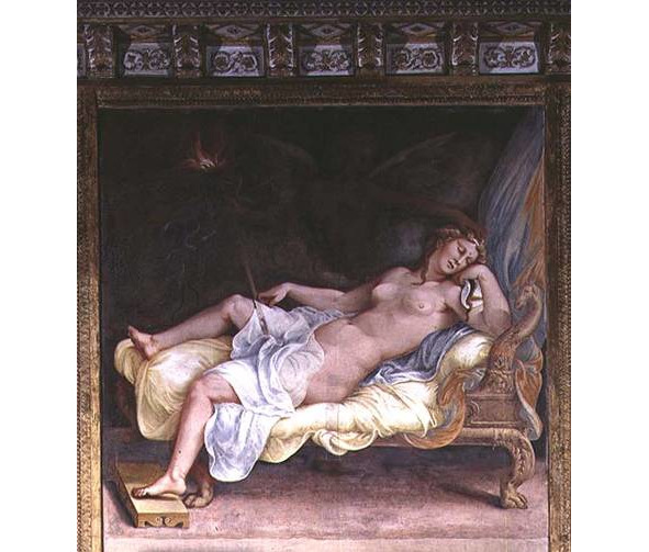 В замке есть великолепная картина художника Джулио Романо, на которой изображена Гекуба – жена царя Трои – Приама, в тот момент, когда ей снится сон, описываемый Данте [Рис. Р. IX.1].