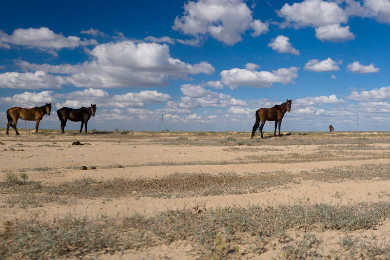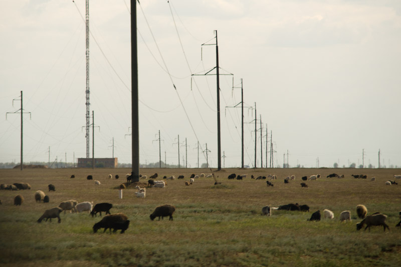 Конечно, на такой дороге Андрей решил проверить скоростные качества своего автомобиля и разогнался до 175 км/час. Именно в этот момент, не раньше и не позже, навстречу нам попался патруль ГАИ на десятке, он развернулся, включил мигалки, догнал нас и велел остановиться. Оказывается, мы проехали знак ограничения скорости 40 км/час, действующий на протяжении 25 км. – ремонт дороги (на обратном пути ремонт здесь действительно был). Таким образом, превышение скорости составило 135 км/час. Не знаю, что бы с нами сделали за это в России, может быть, расстреляли на месте. Андрей отдал 10000 тенге, т.е. $73, все было очень доброжелательно и вежливо. Оказывается, здесь гаишники не прячутся в засаде, не стоят на дороге, а патрулируют её несколькими экипажами, и следят за порядком. После этого мы обратили внимание, что в Казахстане все строго соблюдают ограничение скорости: 110 за городом, значит 110 и дело с концом.