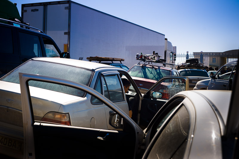 Мы перезнакомились со своими соседями по очереди и поняли, что торчать нам здесь придется долго. Причём ситуация изменилась буквально в этом году. В прошлом году вместо современных пропускных пунктов на казахской и узбекской сторонах были обычные вагончики и дело шло бойко. Потом построили новые КПП, таможню, наняли побольше персонала и всё протухло. Встречные машины с той стороны говорили, что они прошли границу за двое суток.