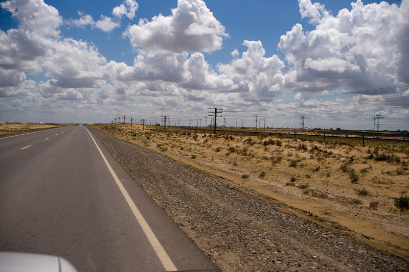 Итак, в 9-00 мы двинули на Бейнеу с расчетом там переночевать, чтобы на следующий день утром выехать на границу. До неё от Бейнеу 80 км грейдера, которого мы опасались. Дорога опять ровная и прямая, отличного качества. За городом ограничение скорости 110 км/час, обязательны фары и ремни, в городе, очевидно, нет.