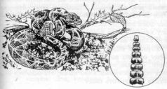 Другие три вида принадлежат семейству рябых гадюк – это гремучая змея, щитомордник и водяной щитомордник. Гремучих змей около 10 видов. Их всех можно объединить в один тип, который легко узнать по кольцам на хвосте.