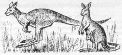 У кенгуру короткие передние лапы, а задние, наоборот, очень длинные с одним большим острым пальцем в середине ступни. С помощью своих мощных задних лап кенгуру совершает прыжки на 3-4 метра и больше. Отдыхает он на своем длинном хвосте. Кенгуру способен очень быстро передвигаться, а слух у него такой тонкий, что он может услышать врага на большом расстоянии.