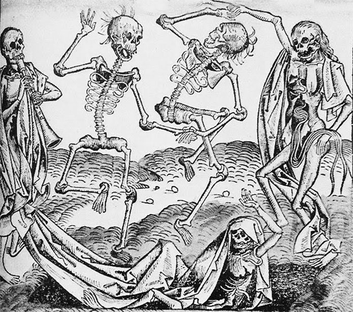 Европеец оказался голым, с черневшим от болезни телом. Казалось, помощи можно было просить только у дьявола, и он ее оказывал, радикально меняя мировоззрение людей того времени. Становились популярными «чумные сочинения», например, книга Яна Черни «Сочинение о моровых болезнях…», где автор дает советы практического свойства. В живописи возникает жанр «Пляски смерти», на картинах часто изображаются скелеты, триумфально танцующие, как на картине Михаэля Вольгемута, шагающие по человеческим трупам или спокойно идущие по земле, облаченные в белые рубища, как у Бернта Нотке, отправляя в загробный мир грешника и праведника. Бояться ада больше было не нужно, он воцарился in terra – так, что сама христианская идея спасения выглядела дьявольской насмешкой.