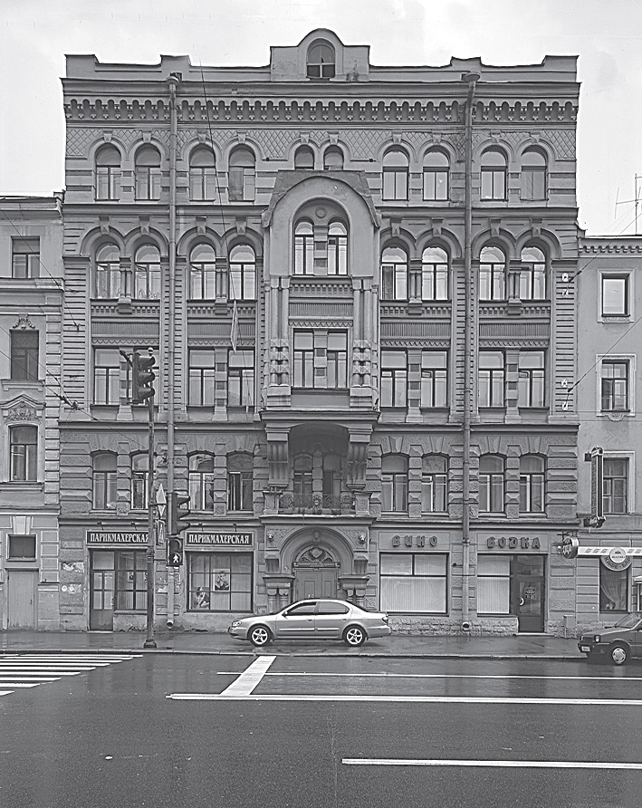 В 1879 году участок перешел во владение купеческого сына Александра Васильевича Кудрявцева-Жаденовского, принявшего вместе с матерью эту фамилию после смерти в 1869 году брата матери, биржевого маклера купца 2-й гильдии Федора Васильевича Кудрявцева. На обремененное долгами имение тогда же было наложено запрещение на продажу, отмененное в 1881 году. Его новый владелец, состоящий в Петербургском купечестве с 1866 года купец 2-й гильдии Николай Тимофеевич Соколов (1842–1887), разбогатевший на торговле астраханским и уральским рыбным товаром в Мариинском рынке, пригласил техника-строителя В. А. Рейса для возведения большого доходного дома[101]. Заканчивая постройку дома, Соколов подал в Петербургское кредитное общество прошение о выдаче ссуды, приложив к нему описание домовладения, в состав которого входил вчерне построенный пятиэтажный на подвалах крытый железом дом площадью в 63,13 кв. сажени. Фасад дома со скульптурными и лепными украшениями частично оштукатурен. В доме устроены голландские, утермарковские и русские печи. До пятого этажа устроена парадная лестница. Во дворе имелся деревянный одноэтажный с мезонином и каменным подвалом жилой флигель, по правой границе двора начата постройка каменного флигеля, а на Тележной улице, 16, – четырехэтажный каменный дом. Домовладение оценивалось в 61 915 руб. Под его залог владелец получил ссуду в 46 600 руб. сроком на 25 лет; позже он вновь обращался в Кредитное общество за ссудами, но после его смерти с долгами, составившими значительную сумму, пришлось расплачиваться наследникам[102], сыну Валериану и дочери Антонине.