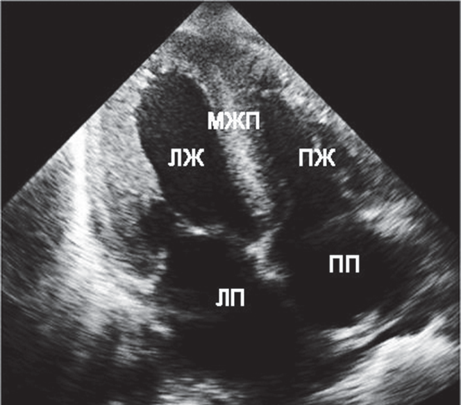 Рис. 2. Эхокадиографическая картина пациента Г. при поступлении в КРО