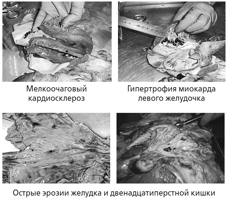 Фон: Артериальная гипертензия (масса сердца – 480 г, толщина стенки левого желудочка – 1,9 см).