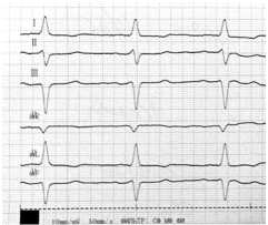 В течение последующих 4 лет записей в амбулаторной карте нет. В 2012 году обратилась в поликлинику с жалобами на дискомфорт в области сердца. Пациентка направлена к кардиологу. Снята ЭКГ и с диагнозом: ИБС: острый инфаркт миокарда (неизвестной давности) пациентка госпитализирована по «скорой помощи» в кардиореанимационное отделение многопрофильного стационара (рис. 1).