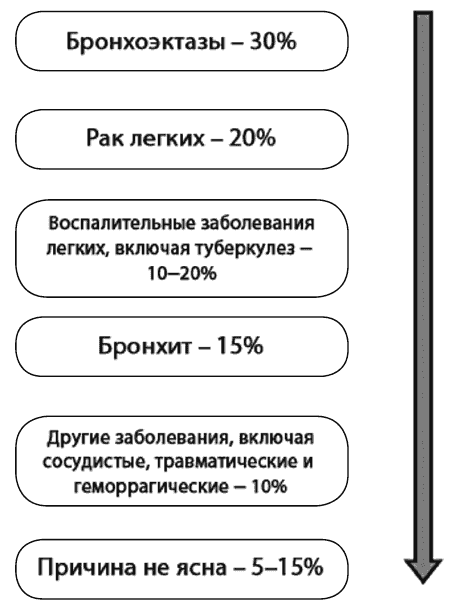 Исходя из патофизиологических механизмов можно выделить следующие причины возникновения кровохарканья: