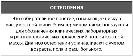 Следует акцентировать внимание, что термины «ОСТЕОПЕНИЯ» и «ОСТЕОПОРОЗ» – это инструментально подтвержденные термины (т. е. чтобы использовать их, необходимо наличие денситометрии или сведения о наличии патологических переломов), которые разделяют лишь мнение экспертов, условно разделивших эти понятия значениями Т-критерия, определяемого на костной денситометрии, и статистическими показателями распространенности переломов при том или ином значении показателя.