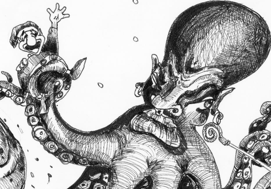 Other twelve other offshoots, similar to the tentacles of a gigantic octopus, came out from the supernatural being to grab each one its victim and creep into its mouth.