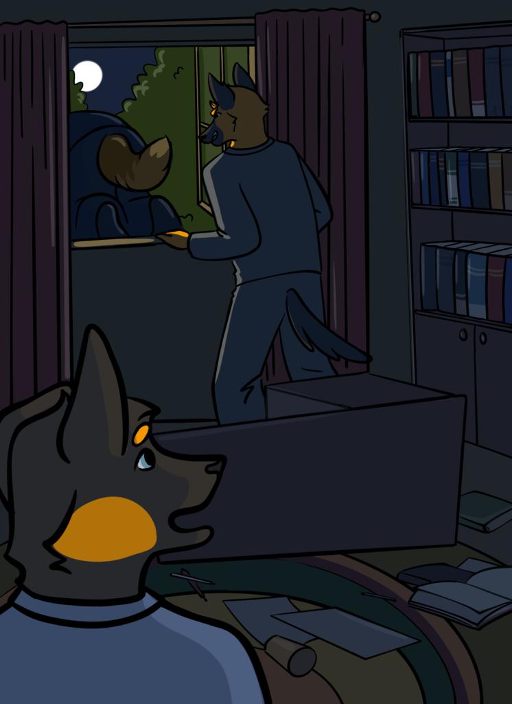 Этой ночью я проснулся от громкого лая. Прислушался, лаял мой отец. Лаял зло, на кого-то. Значит, что-то случилось. Я вскочил с кровати и побежал на второй этаж. Было совсем темно, но я знал наш дом, как свои передние лапы, поэтому быстро поднялся по лестнице. Лай доносился из родительской спальни. Я распахнул дверь, лунный свет освещал комнату, увидел длинный хвост и пару крупных задних лап исчезающих в окне. Неужели в наш дом пробрался вор? Отец перестал лаять и посмотрел на меня: