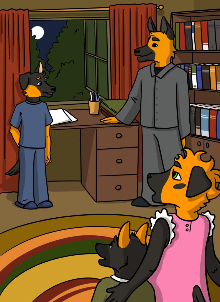 – Мне нужно с вами поговорить, щенята, – папа сидел за столом с серьёзным выражением морды, – Бетси, уверен, что Рекс рассказал тебе о том, что случилось вчера ночью.