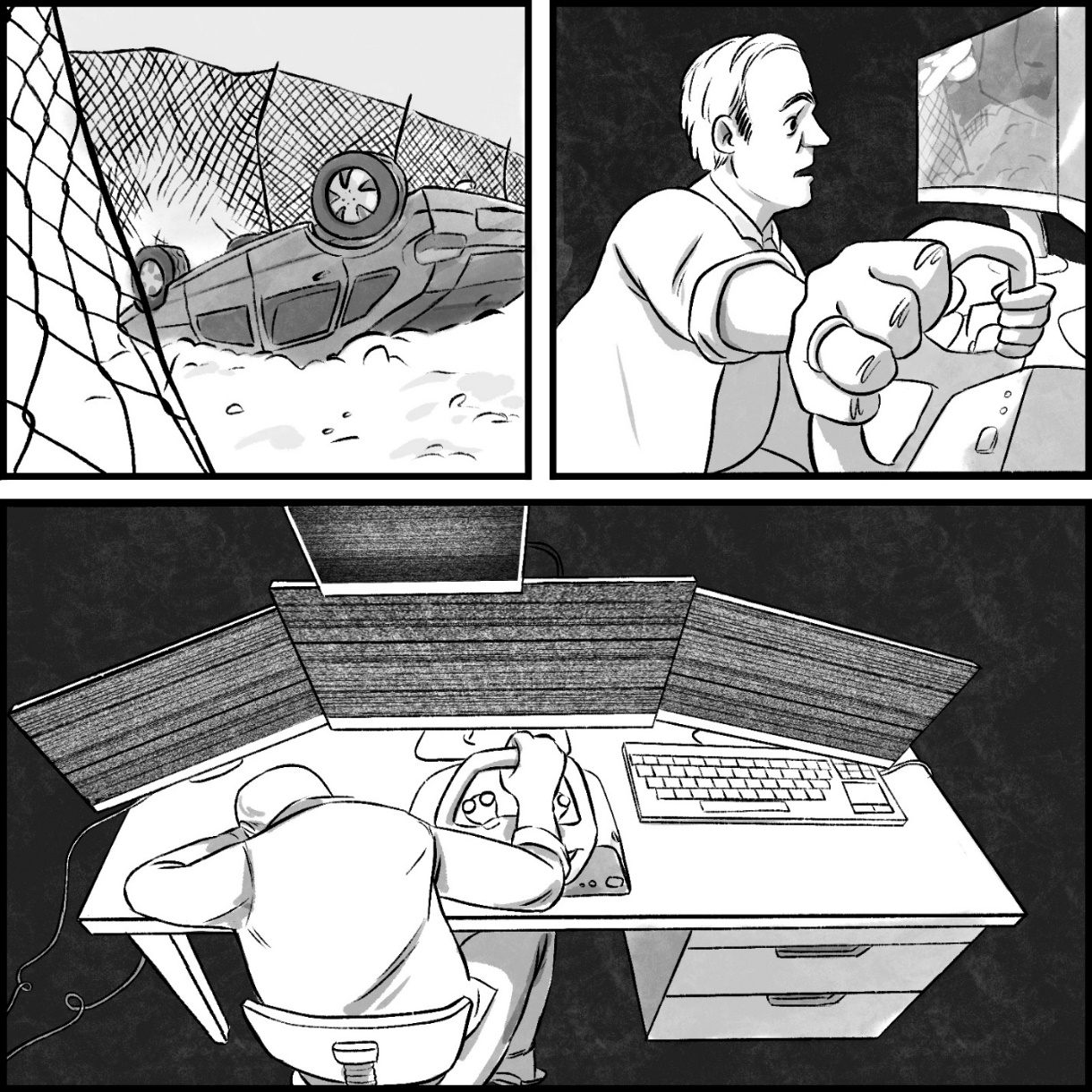По-моему, его должность официально называется «оператор автопилотных модулей», или что-то в этом духе. Многие машины сейчас могут ездить сами по себе, но иногда возникают сложные ситуации. Папа рассказывал, что как-то раз по обочине дороги шел пьяный человек, и алгоритмы автопилота не могли определить, собирается ли этот человек переходить дорогу или нет. Вот в таких случаях автопилот вызывает оператора, который удаленно подключается к машине и принимает управление на себя.