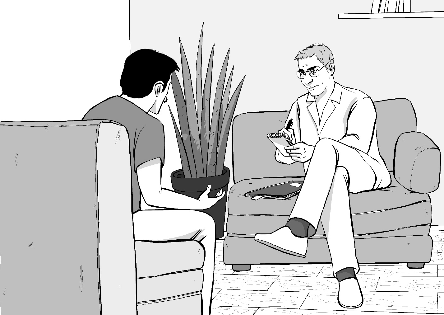 – (сидит в кресле) А-а, Док, это вы… Здравствуйте… А я уж думал, что кто-то другой придет, раз меня отвели в какое-то новое место…
