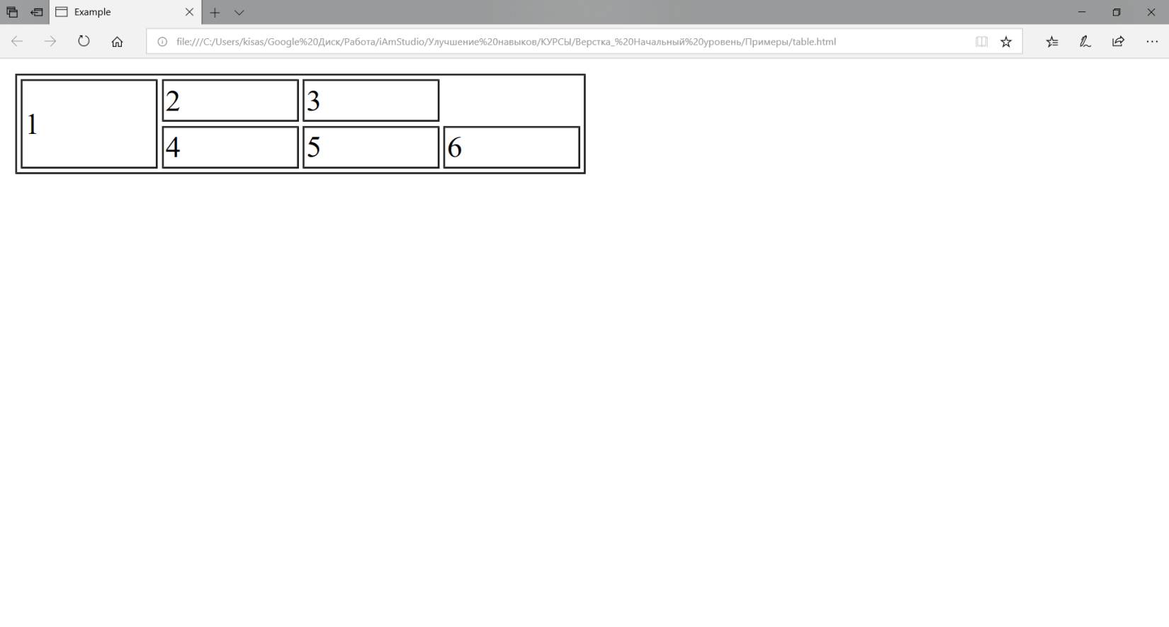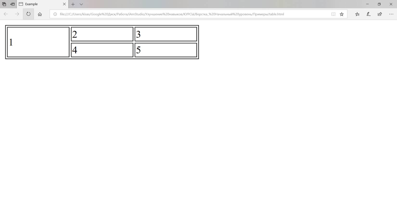 Формально это таблица з на 2, но так как я указал первой ячейке расшириться на 2, то было бы ошибкой во второй строке написать такое же количество ячеек td, как и в первой. Результат был бы тогда такой: