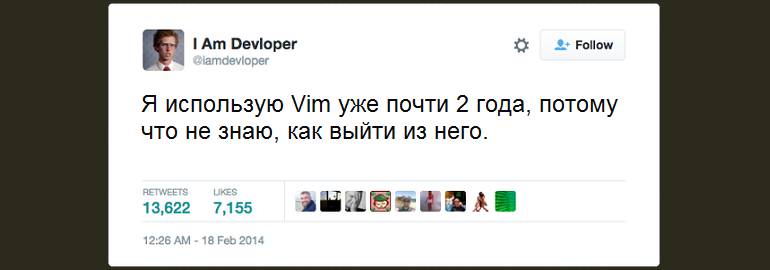 Но будем откровенны. Изначально мы работали в редакторах исходного кода. Мы это верстальщики, программисты, все, кто работал с кодом. Таким редактором долгое время был, и наверное остался блокнот, который поставлялся и поставляется до сих пор с операционной системой Windows. Со средой разработки в Linux не все так просто. Там есть Vim – редактор, позволяющий обрабатывать содержимое файлов прямо в режиме консоли.