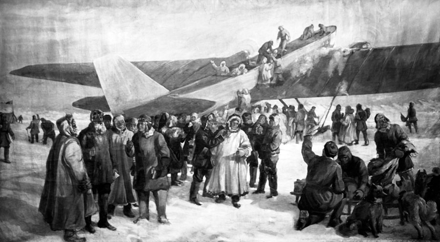 Андрей Сашин. Первый прилёт лётчика Ляпидевского в лагерь Шмидта