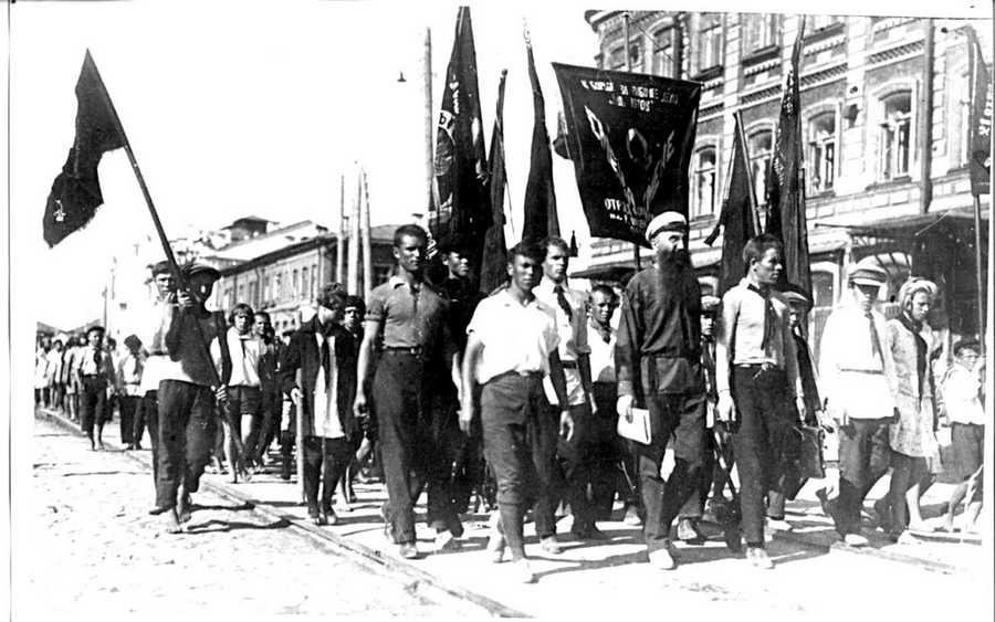 Ульяновский окружной слет пионеров. Август 1929 года. Колонна пионеров и вожатых на улице К. Маркса (Гончарова)