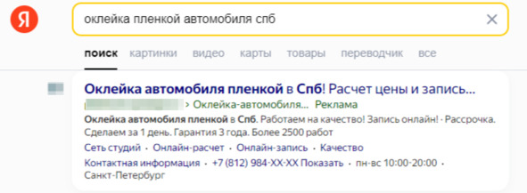 Сеть студий автодетейлинга, с которой мы работаем уже на протяжении нескольких лет при постепенном росте рекламного бюджета, недавно открыла еще одну студию. Эта сеть предлагает разные услуги для автовладельцев: химчистку салона, оклейку авто антигравийной пленкой, перетяжку, автокерамику и др. Услуги мы рекламируем в поиске Яндекса. Под каждую услугу мы составляем отдельную рекламную кампанию и в каждой, учитывая ключевые особенности, готовим свои офферы, в том числе на основе анализа конкурентов.