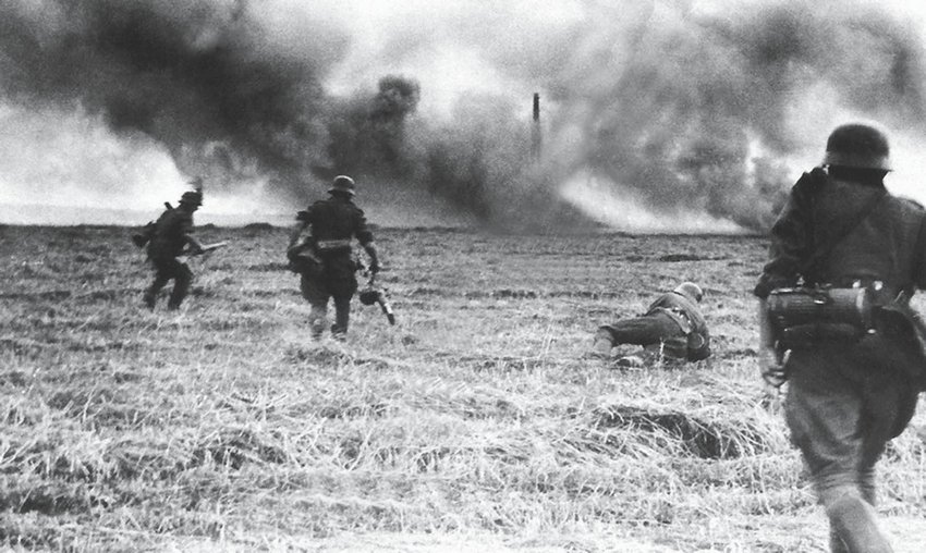 Немецкие пехотинцы идут в атаку
