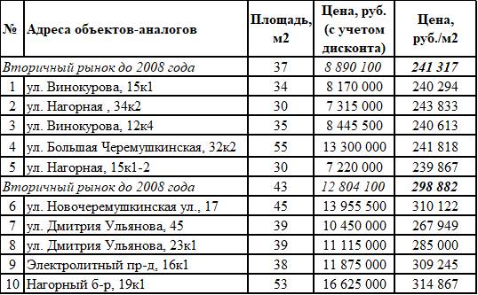 1) квартиры-аналоги, расположенные в домах, построенных до 2008 года