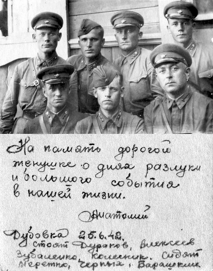 Вот вспомнил один случай. Немцы над нашими позициями бросали листовки с пропуском – нарисовано окружение, выход и написано: «Сталинские дьяволята, бейте своих командиров, сдавайтесь, не то вы будете все уничтожены». И в один из дней находились наши позиции друг от друга в метрах трехстах. Вдруг немцы объявляют в громкоговоритель: «Смотрите, что с вами будет, если вы не сдадитесь». Смотрим, выводят на бруствер полураздетых пять человек и расстреливают на наших глазах. Ну здесь без команды мы открыли из винтовок и ПТР огонь… Я, во всяком случае на своей родине, не знаю, чтобы кто-то перешел к немцам. Дело другое, что при отходе многие приставали к другим частям, потому что настолько плохое было управление войсками, настолько плохо был организован отход на очередные рубежи, что перемешивание частей было страшнейшее. Больше того, скажу, что вот я, как командир роты, не имел топографической карты. Представьте себе, вести бой, не имея топографической карты, не зная, куда ты… Говорят: «Будешь отходить на восток», – и дают ориентиры. Иногда командир батальона на листике рисовал схему.