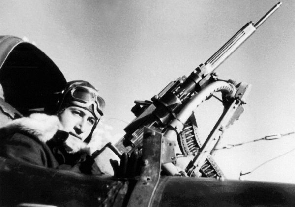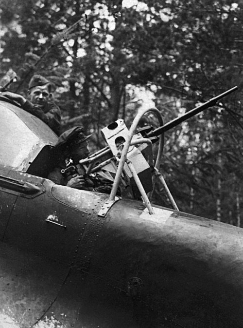 Воздушный стрелок Ил-2 сержант Баклар Саакян за самодельной оборонительной установкой под пулемет ШKAC