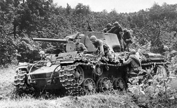 Танковый десант занимает места на танке «КВ-1»
