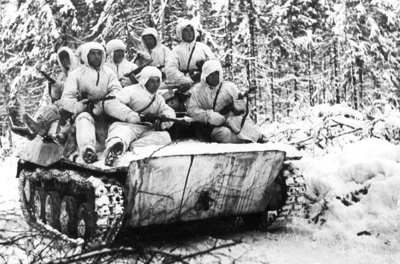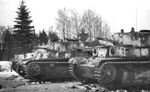 Танки «Т-28» перед атакой. Карельский перешеек, февраль 1940 года