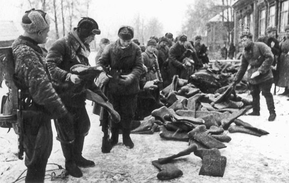 Выдача валенок. 1941 год