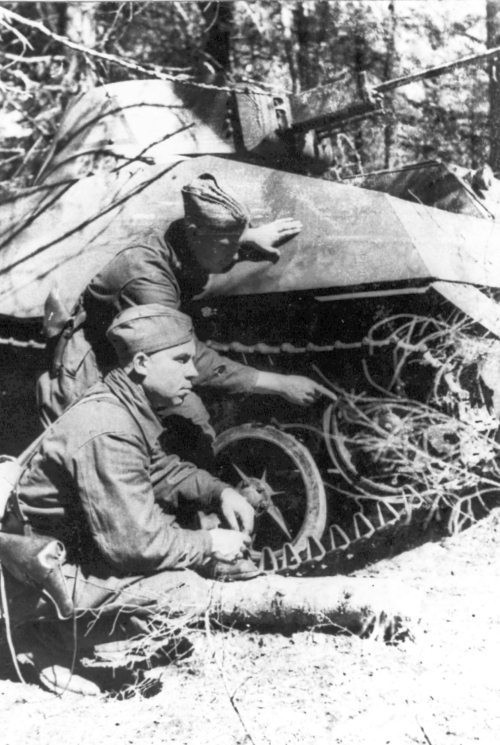 Выйдя из боя, экипаж прежде всего должен был обслужить машину: заправить ее горючим и боеприпасами, проверить механизмы, почистить и, если надо, вырыть для нее капонир и замаскировать. В этой работе принимал участие весь экипаж, иначе танкисты просто не управились бы. Командир иногда устранялся от наиболее грязной и примитивной работы – чистки ствола или отмывки снарядов от смазки. «Снаряды я не мыл. Но ящики подносил», − вспоминает А.С. Бурцев. Зато капониры для танка или «землянку» под ним рыли всегда сообща.