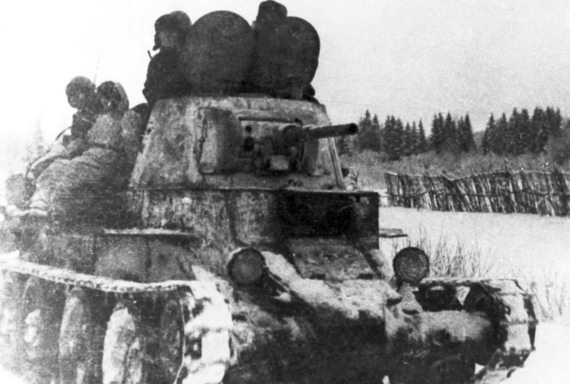 Танки «Т-28» перед атакой. Карельский перешеек, февраль 1940 года