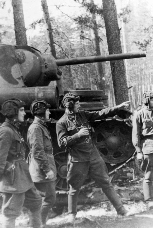 Командир роты старший лейтенат Гнаденберг с экипажем у своего «КВ-1»