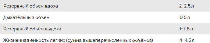 Напомним, что один из основных параметров (жизненная ёмкость лёгких – ЖЕЛ) – является суммой дыхательного объёма, резервного объёма вдоха и резервного объёма выдоха.