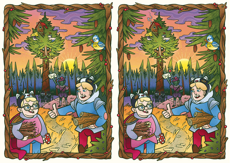 Уверен, тебе не составит труда найти 20 отличий между зеркальными отражениями на следующих двух разворотах!