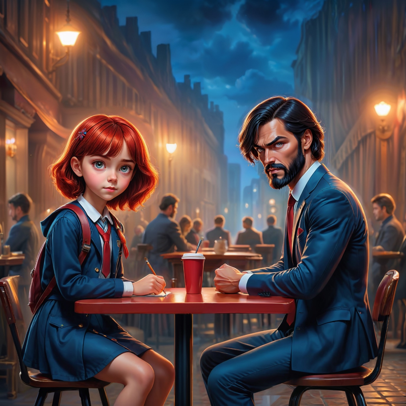 Девочка отодвинула тяжёлый стул и села напротив. Повесила свою модную сумочку на спинку, поправила короткую школьную юбку и принялась, не стесняясь, разглядывать мужчину. Он в ответ занялся тем же.
